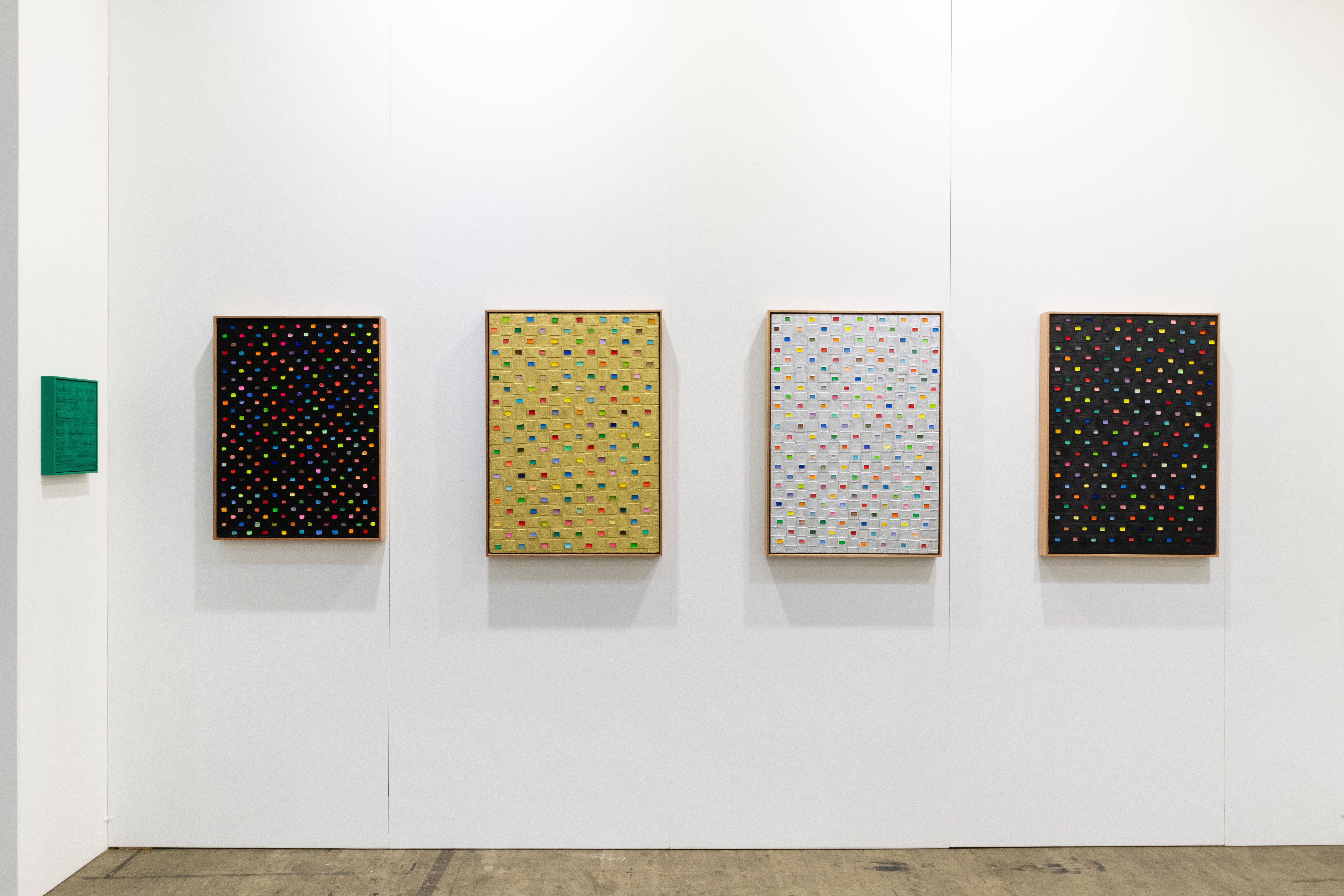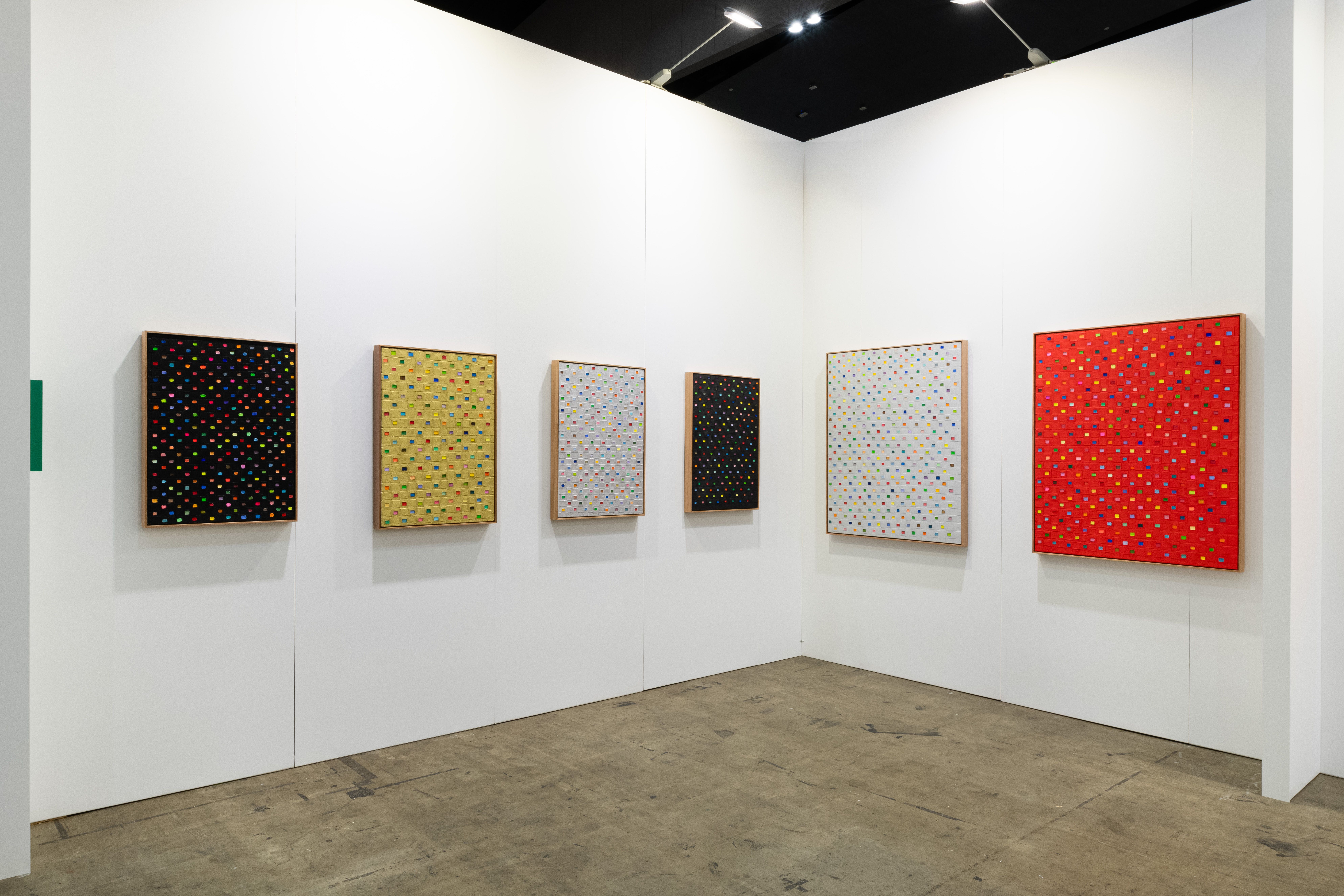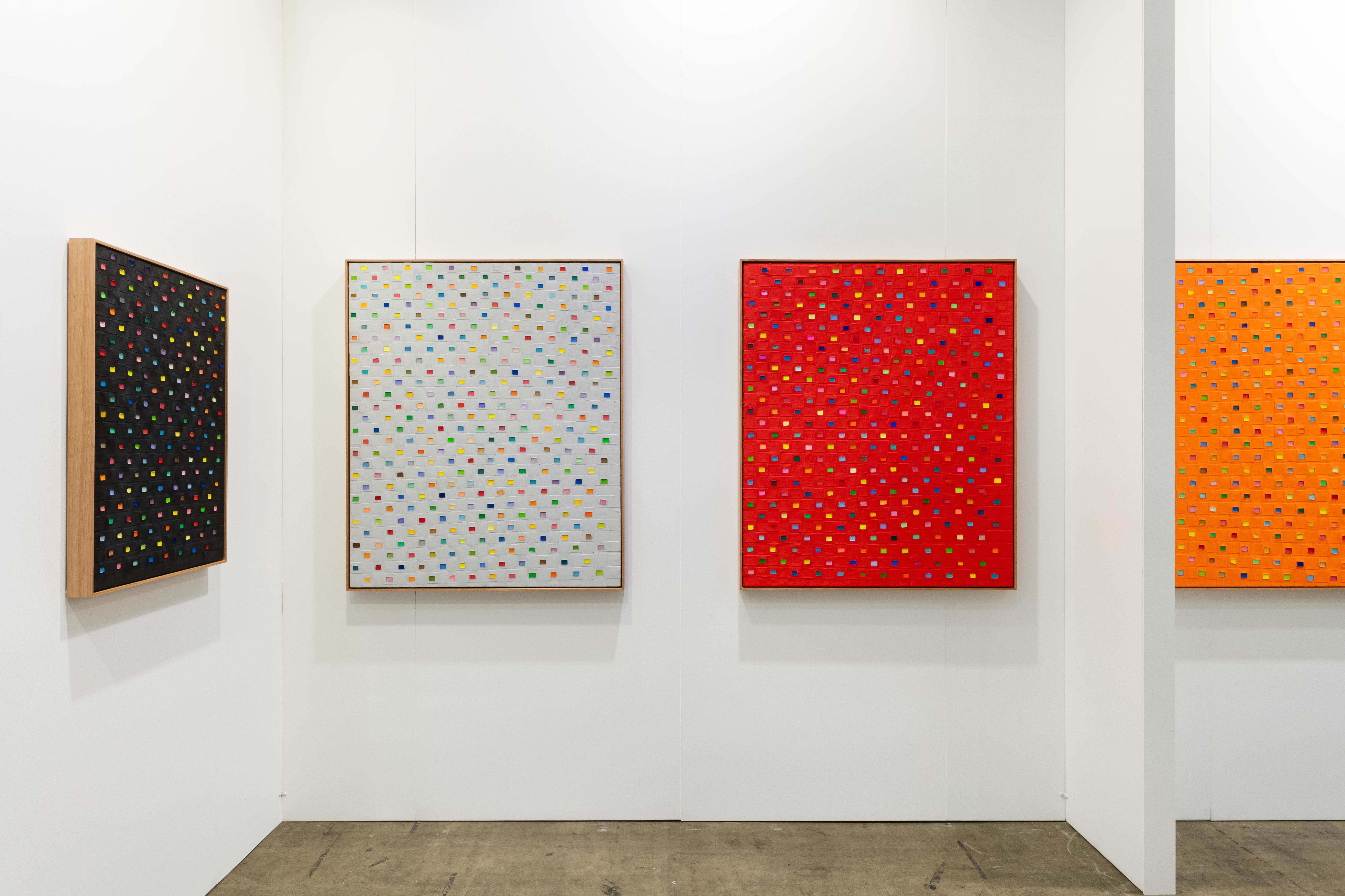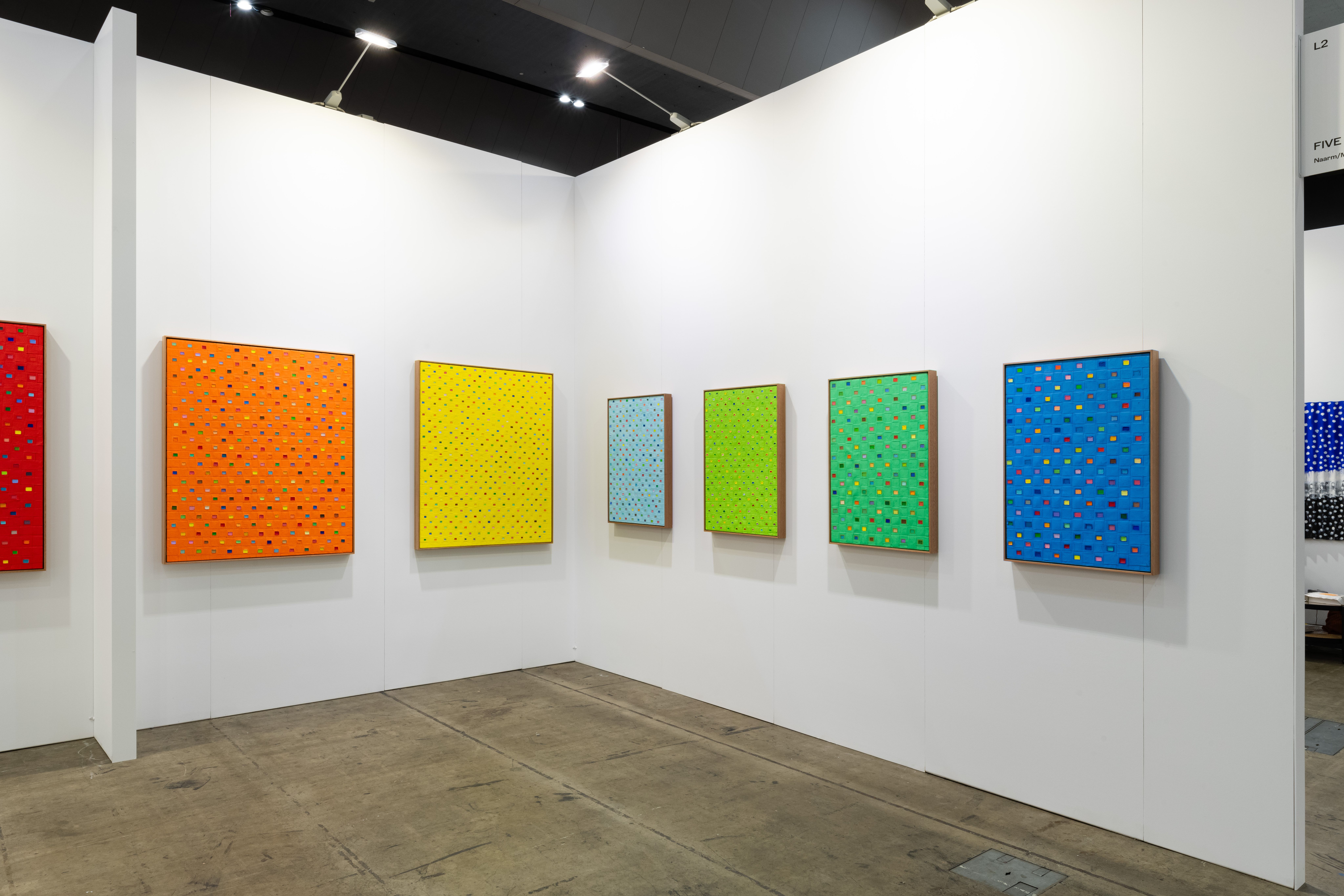 Though the compositional language remains controlled, gestural expression emerges through iteration and accumulation. Each painting reflects an ongoing cycle of making—where reduction, repetition, and material negotiation transform the grid into a dynamic field rather than a fixed system.